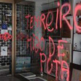 La galería del artista que pintó sobre la tumba de Franco amanece con una pintada contra él: "Tenreiro, hijo de puta"