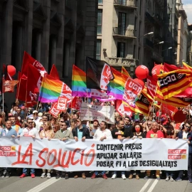 Milers de treballadors omplen la Via Laietana per reclamar augments salarials en un 1 de maig que torna a la normalitat