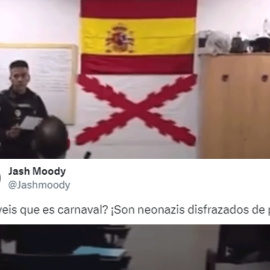 La Policía Nacional cuelga una bandera utilizada por la extrema derecha en la comisaría de Las Palmas