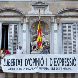 Torra vuelve a colgar una pancarta por la "libertad de opinión y expresión" como respuesta a la orden del TSJC