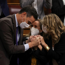 Así fue el apoteósico momento en el que Pedro Sánchez, Nadia Calviño y Yolanda Díaz descubren el resultado final de la votación