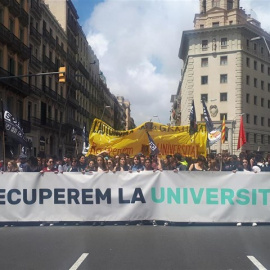 Estudiantes se manifiestan en Barcelona para reclamar una rebaja de las tasas universitarias
