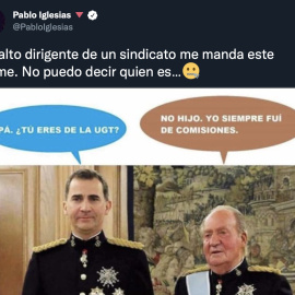 Pablo Iglesias publica un meme del rey emérito que le pasa un alto dirigente de un sindicato y los tuiteros aplauden