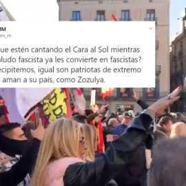 Entonan el 'Cara al sol' durante la protesta de Vox en Barcelona: "Lo cantan con el brazo tieso porque son constitucionalistas moderados"