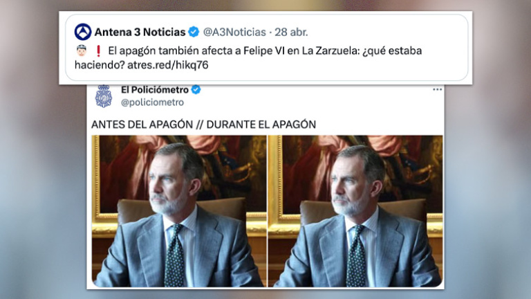 El mismo día 28, con muchos medios sufriendo dificultades para informar a la ciudadanía, este medio encontró los recursos técnicos y humanos para publicar una pieza titulada: "El apagón también afecta a Felipe VI en La Zarzuela: ¿qué estaba haciendo?".