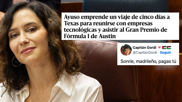 Ayuso viaja a Texas para reunirse con empresas y ver la Fórmula 1: "Sonríe, madrileño, pagas tú"