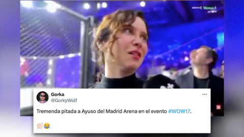 Más tarde, en el mismo evento, el speaker sobre el octógono también destacó su presencia, sentada en primera fila junto al hispanogeorgiano y Pablo Motos: "Hoy queríamos dar las gracias por la presencia de la presidenta de la comunidad de Madrid, Isabel Díaz Ayuso, apoyándonos. Gracias, Isabel, de corazón", anunciaron. La pitada aquí ya fue estruendosa.
