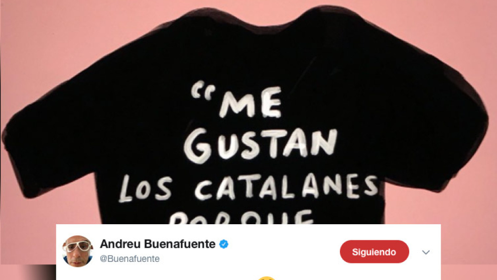 Así es la camiseta que ha diseñado Andreu Buenafuente, con una de las míticas frases de Mariano Rajoy. El cómico ha escogido una de las citas célebres del autor de "cuanto peor, mejor" o "¿y la europea?". Pero para el momento actual, ha considerado la más oportuna la referente a los catalanes.