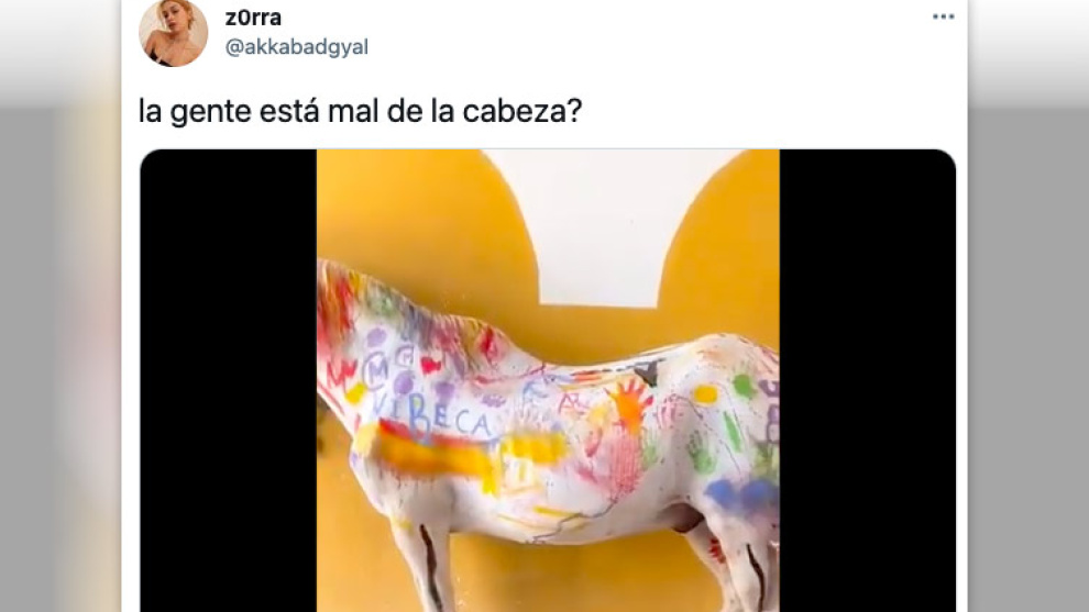 Muchos en Twitter no salen de su asombro tras visionar algunos vídeos en los que se pueden ver a unas niñas con pinturas que dejan al pobre jamelgo hecho un cuadro.