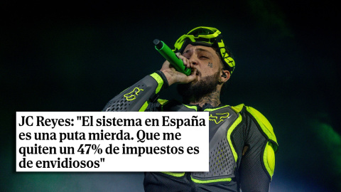 El cantante JC Reyes ha asegurado que el sistema fiscal en España es "una puta mierda" y que le quiten el 47% en impuestos es "de envidiosos". Recordemos que en los casos de gravámenes tan altos hablamos de rentas mínimas de 300.000 euros.