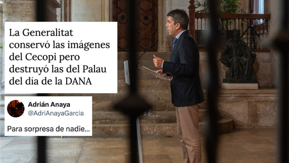 La Generalitat dice que las imágenes se eliminaron en "cumplimiento de la ley" al no haber sido requeridas por las fuerzas de seguridad y al no considerarse un caso "excepcional". La oposición cree que el Govern de Mazón intenta "esconder" qué estuvo haciendo el president hasta su llegada al Cecopi.