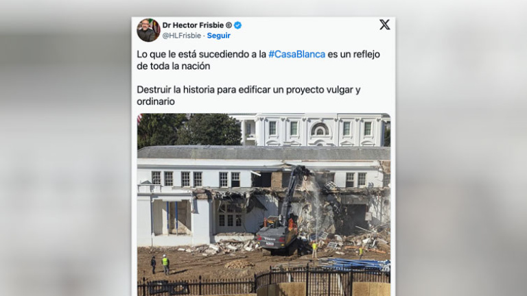 Continúa la distopía en que se ha convertido EEUU mientras el mundo asiste entre curioso y horrorizado. El otro día veíamos el grotesco vídeo con inteligencia artificial publicado por Donald Trump, donde lanza excrementos a los manifestantes desde un avión. Lo que ahora hemos contemplado no es producto de otra IA, sino un vídeo real donde se ven excavadoras derruyendo parte del ala este de la Casa Blanca.