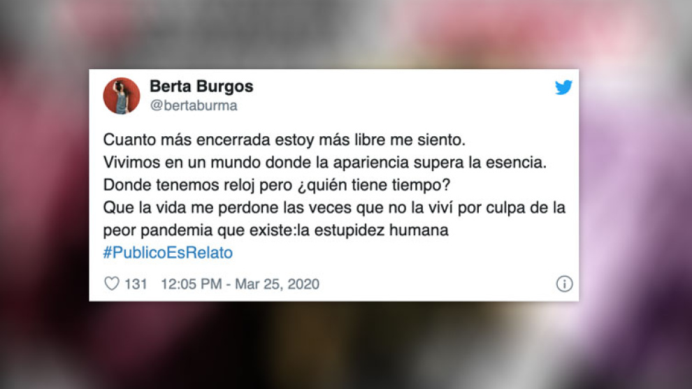 "Cuanto más encerrada estoy más libre me siento": así comienza la historia ganadora del concurso de microrrelatos de Público. Su autora, Berta Burgos, inspirada por la cuarentena, llega a una sorprendente conclusión.