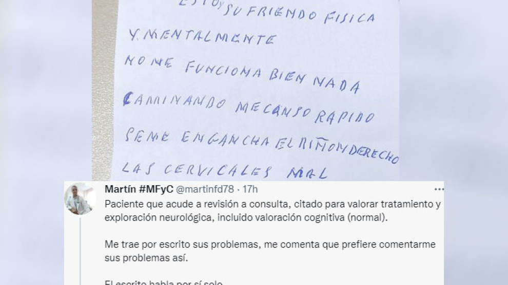 En otros dos tuits, el médico de familia, que aclara que pidió permiso antes de compartir la carta, comenta que el paciente "se fue algo más motivado al finalizar consulta". Además, aprovecha para poner de relieve "el problema social en mayores que supone la soledad y aislamiento social". Un "problema mayúsculo" con una repercusión física, "pero sobre todo psicológica".