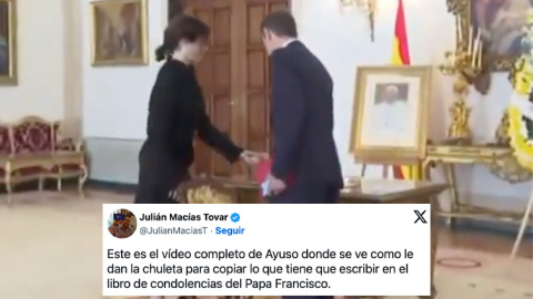 El detalle de Ayuso al firmar sus condolencias por el papa que no ha pasado desapercibido: "Necesita una chuleta para escribir diez líneas"