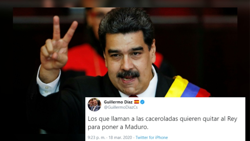 "Los que llaman a las caceroladas quieren quitar al Rey para poner a Maduro", espetó el político desde su cuenta oficial de Twitter, lo que le ha llevado a ser el centro de atención durante unas pocas horas.