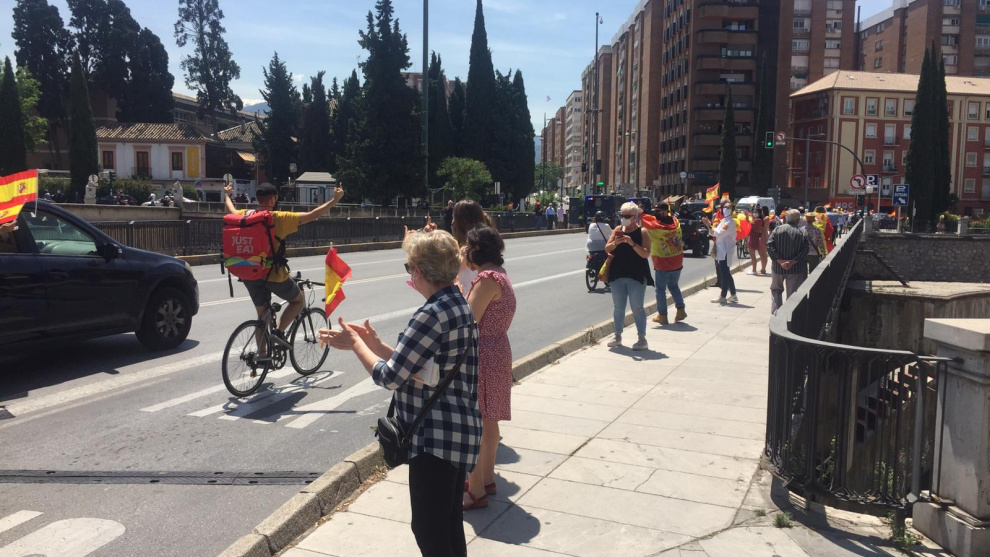 Riders x Derechos ha publicado un tuit que muestra a un repartidor de Granada haciendo dos peinetas en señal de desaprobación, acompañada del texto: "La clase trabajadora saludamos a nuestra manera a los fascistas".