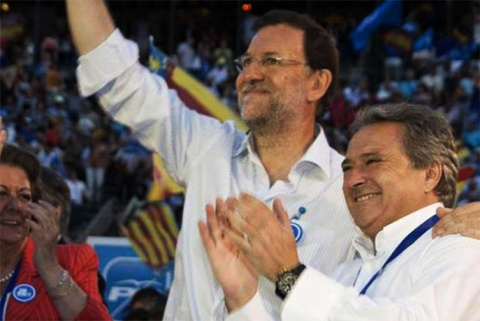 Alfonso Rus fue alcalde de Xàtiva entre 1995 y 2015 y presidente de la Diputación de Valencia entre 2007 y 2015. El 2 de mayo de 2015 fue suspendido de militancia del PP tras publicarse unas conversaciones en la que se le escuchaba supuestamente contando dinero del cobro de una comisión. El 26 de enero de 2016 fue detenido en una operación contra la corrupción a nivel local y regional en la Comunidad Valenciana junto a varias decenas de personas. En la foto, Rajoy y Rus en un mitin del PP en 2007.