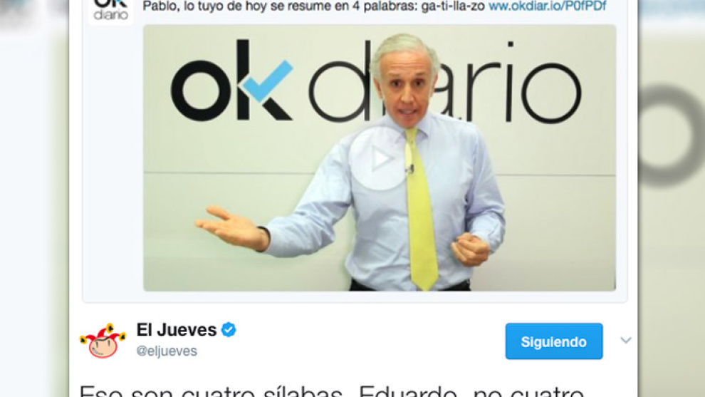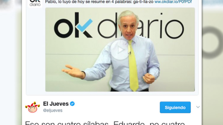 El vídeo se colgó con el título "Pablo, lo tuyo de hoy se resume en 4 palabras: ga-ti-lla-zo". Poco después, la cuenta de Twitter de la revista satírica ‘El Jueves’, respondió con un mensaje en Twitter que ha tenido un gran éxito y lleva más de 4.000 retuits.