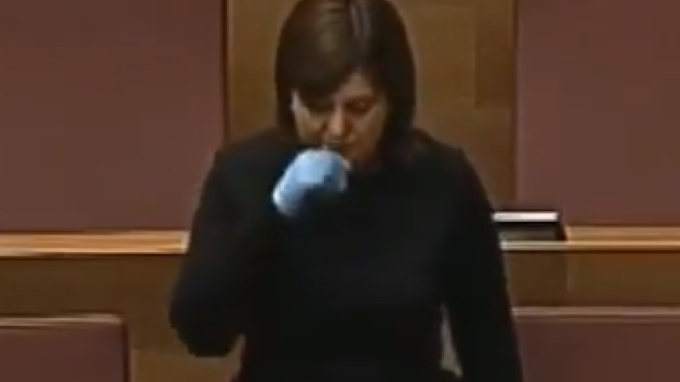 Guantes llevaba Isabel Bonig pero como si no: contraviniendo toda lógica y hasta el más puro sentido común, la presidenta del PP de la Comunitat Valenciana no ha tenido mejor idea que santiguarse y besarse las manos con los guantes puestos cuando empezaba la sesión en el Parlamento valenciano. Vean: