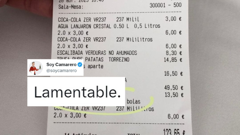 El usuario de Twitter @soycamarero ha difundido una imagen del recibo junto a su opinión al respecto: “Lamentable”.