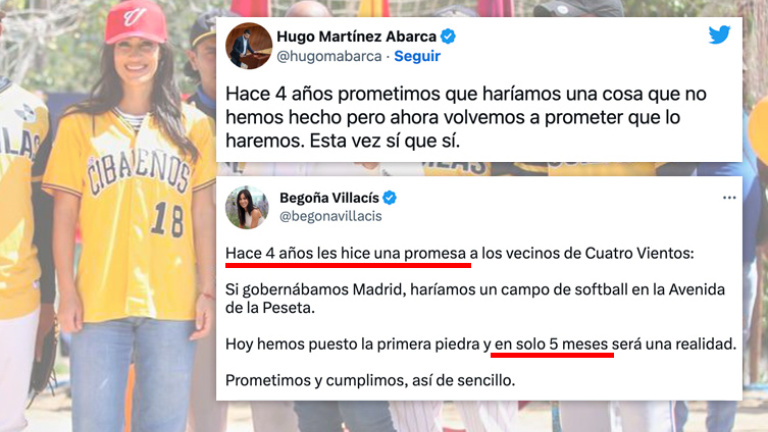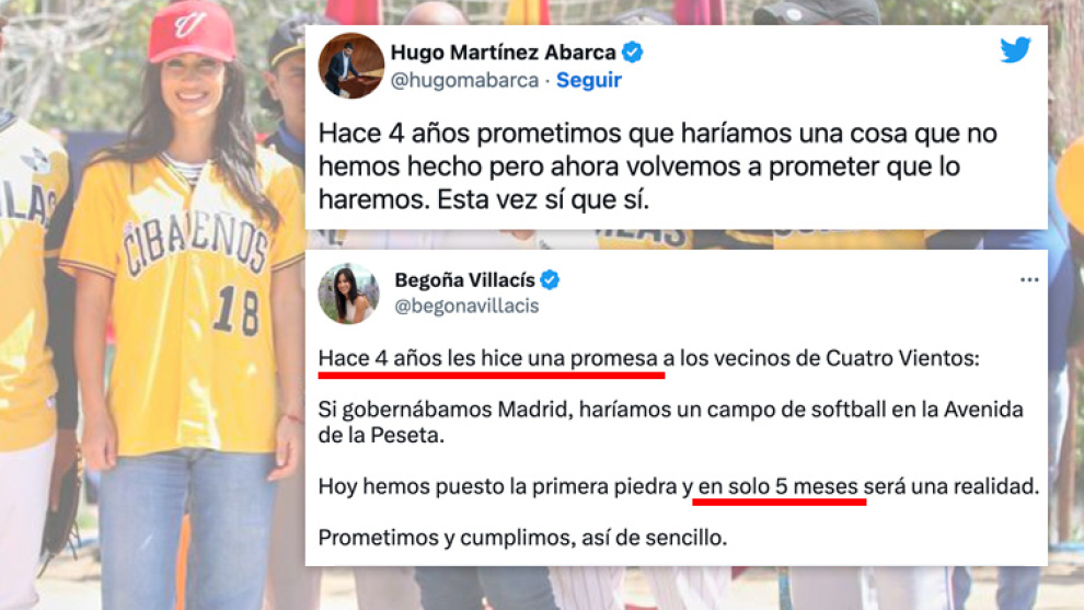 A falta de norias descomunales, buenos son los campos de sóftbol. A pocas semanas de las elecciones, la vicealcaldesa de Madrid, Begoña Villacís, ha tenido que rebajar sus expectativas y este fin se semana ha inaugurado a bombo y platillo... la primera piedra de una instalación deportiva que prometió hace cuatro años.