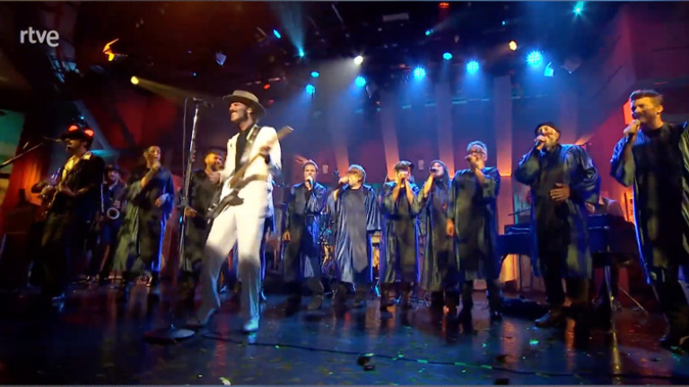Sin embargo, lo que más ha dado que hablar fue la actuación con la que cerró el programa. Leiva comenzó a cantar El polvo de los días raros, un tema de su nuevo álbum Gigante y, sin previo aviso, empezó a salir tras él un coro compuesto por Ivan Ferreiro, Dani Martín, Dani Fernández, Eva Amaral, Juan Aguirre, Santi Balmes, Travis Birds, Rubén Pozo, Juancho, Grison y Castella.