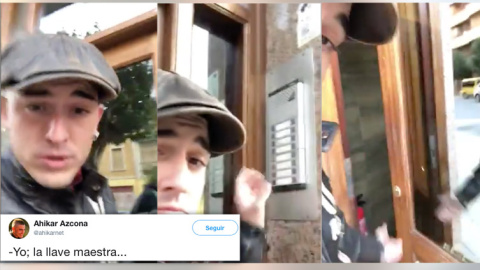 Llamar a un portero automático, decir “yo” y que te abran la puerta. Todos lo hemos experimentado alguna vez y hay que reconocer que no parece una medida de seguridad muy elaborada. El tuitero Ahikar Azcona (@ahikarnet) ha publicado en Twitter un vídeo para concienciar sobre este asunto, titulado: “Yo; la llave maestra”.