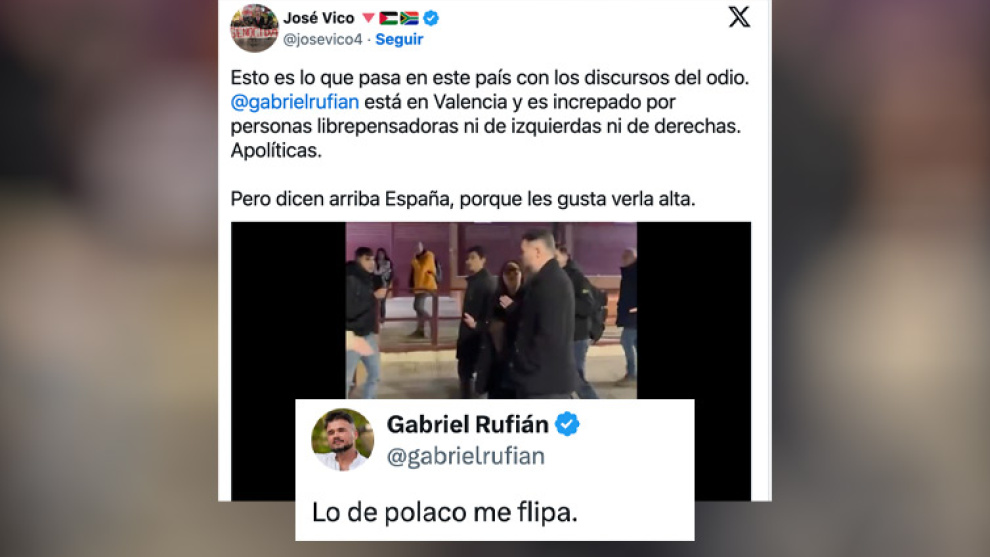 En un momento dado, Rufián les dice: "Estáis en primero de Vito, ¿eh?", recordando el proceder habitual de este activista de ultraderecha. Después, en su cuenta de Twitter ha comentado también otro de los gritos que profirieron: "Lo de polaco me flipa".