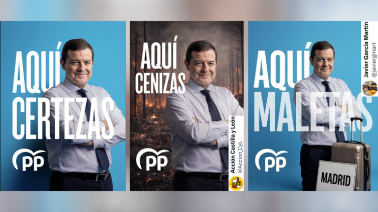 Por parte del Partido Popular ya han mostrado uno de sus carteles, con una foto de su candidato y actual presidente de la Junta, Alfonso Fernández Mañueco, y el lema: "Aquí certezas". Llama la atención también el hecho de que Mañueco aparece con los brazos cruzados... Será la costumbre.