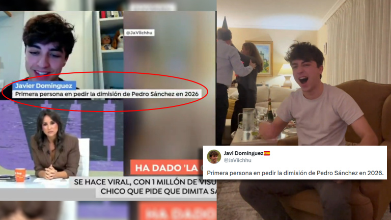 El programa de Susanna Griso no tuvo mejor idea que llamar al chico para entrevistarlo. El rótulo también tiene su guasa: "Primera persona en pedir la dimisión de Pedro Sánchez en 2026".
