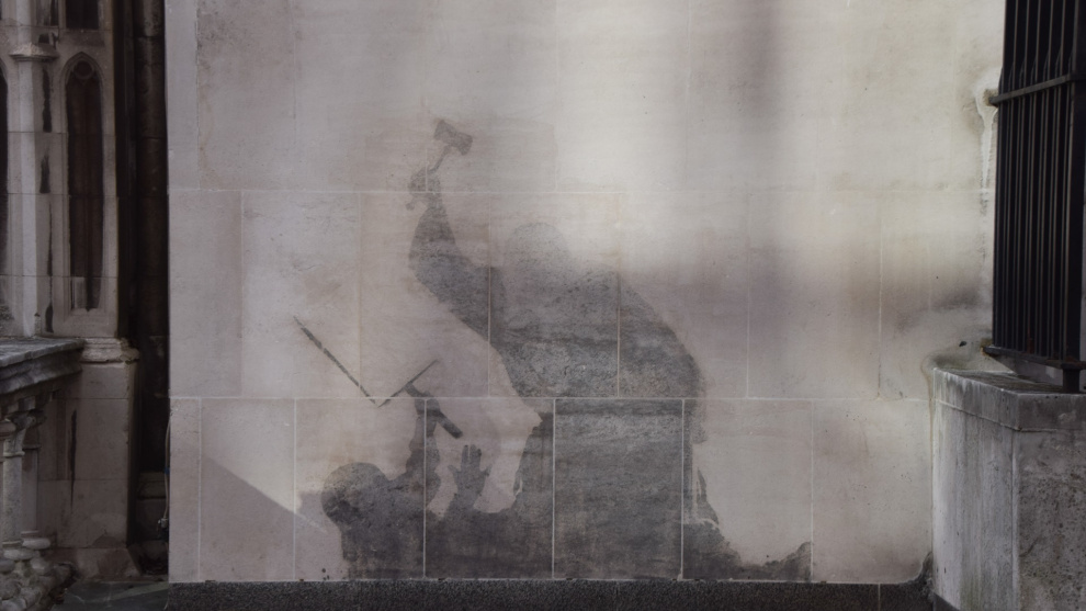 Banksy ha logrado volverse viral de nuevo con su última obra. El artista callejero realizó un mural en la pared exterior del Tribunal Superior de Londres en el que aparecía un juez, con peluca y toga, golpeando con un mazo a un manifestante, interpretada como una crítica a la represión de la libertad de expresión por las protestas propalestinas. Sin embargo, fue borrado dos días más tarde.