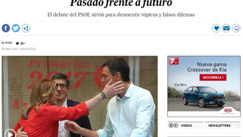 El editorialista del diario de Prisa expresa en siete párrafos la poca capacidad de Pedro Sánchez para liderar un partido y llevarlo a la victoria frente a la compatibilidad de Díaz y López para trabajar juntos. Bajo el título Pasado frente a futuro, el texto periodístico asegura que la abstención del PSOE en la investidura de Rajoy se debe a las dos derrotas electorales de Pedro Sánchez. Incluso, le acusan de plantear un debate bronco.