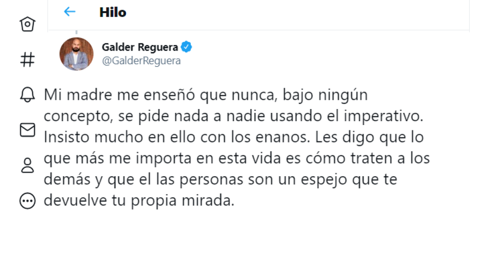 El escritor Galder Reguera ha publicado en su cuenta de Twitter un hilo sobre el poder de la gratitud y la educación.