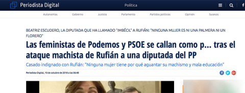 1.- “Las feministas de Podemos y PSOE se callan como p... tras el ataque machista de Rufián a una diputada del PP”. (Periodista Digital)