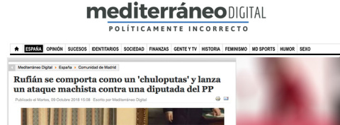 2.- “Rufián se comporta como un 'chuloputas' y lanza un ataque machista contra una diputada del PP” (Mediterráneo Digital)