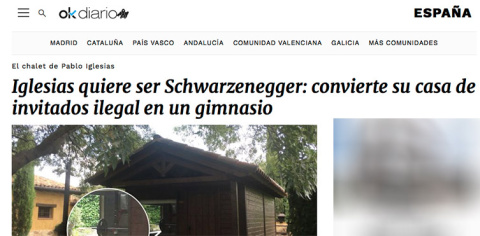 3.- “Iglesias quiere ser Schwarzenegger: convierte su casa de invitados ilegal en un gimnasio” (Okdiario)