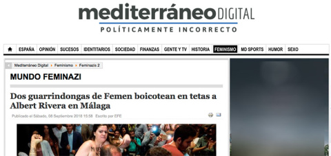 4.- “Dos guarrindongas de Femen boicotean en tetas a Albert Rivera en Málaga” (Mediterráneo Digital)
