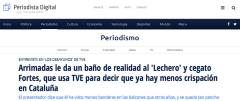 5.- “Arrimadas le da un baño de realidad al 'Lechero' y cegato Fortes, que usa TVE para decir que ya hay menos crispación en Cataluña” (Periodista Digital)