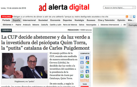 6.- “La CUP decide abstenerse y da luz verde a la investidura del psicópata Quim Torra, la “putita” catalana de Carles Puigdemont”