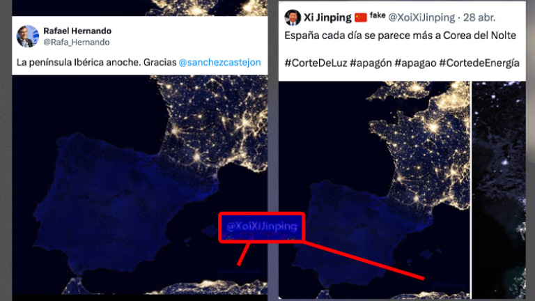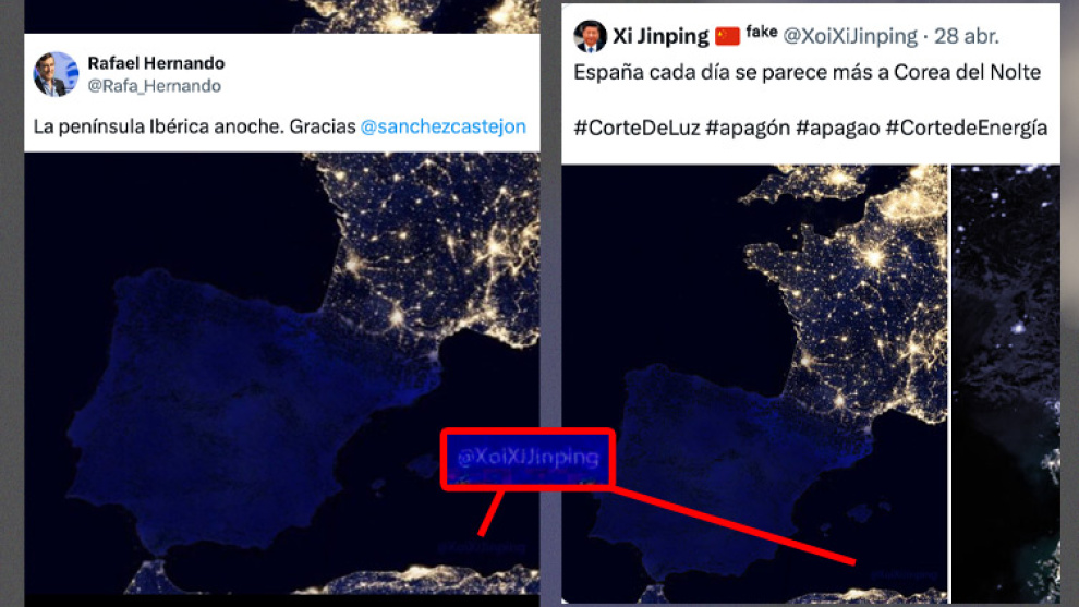 Rafa Hernando tuitea una supuesta foto de España sin luz y resulta ser el meme de una cuenta parodia