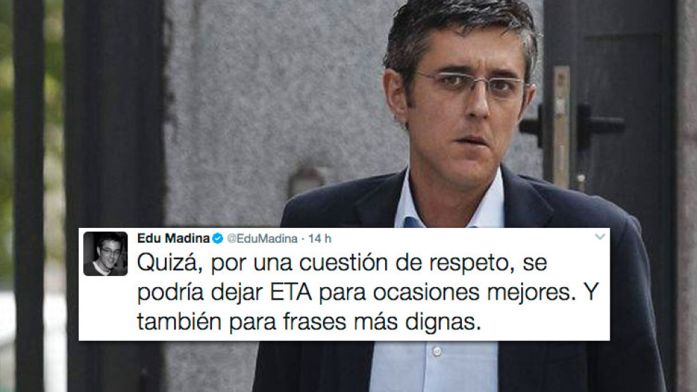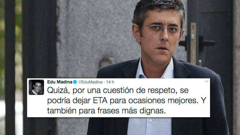 Pero quizá la contestación más comentada ha sido la del diputado socialista Eduardo Madina, víctima de un atentado de la banda terrorista ETA que en 2002 le hizo perder una pierna y que le pudo costar la vida. “Qué por una cuestión de respeto, se podría dejar ETA para ocasiones mejores. Y también para frases más dignas”.