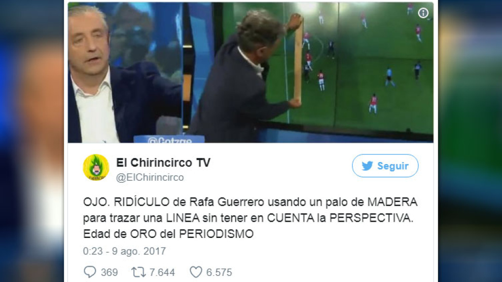 Posteriormente, en las redes sociales, los tuiteros han recibido entre bromas un fotograma del programa en el que el exárbitro Rafa Guerrero intenta comprobar si el gol fue legal o no con una tabla de madera sobre una tele: