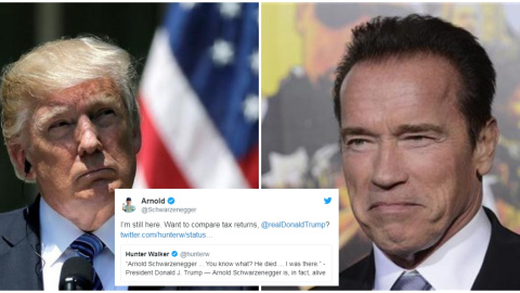 "¿Quiere que comparemos las declaraciones de impuestos, Donald Trump?", agregó en jocoso el intérprete y político, de 71 años, apostilló el actor en relación a la polémica sobre la negativa del Tesorero de EEUU de publicar la declaración del presidente. Las reacciones han sido enormes, donde la gran parte de los tuiteros se han puesto del lado del actor de Terminator.