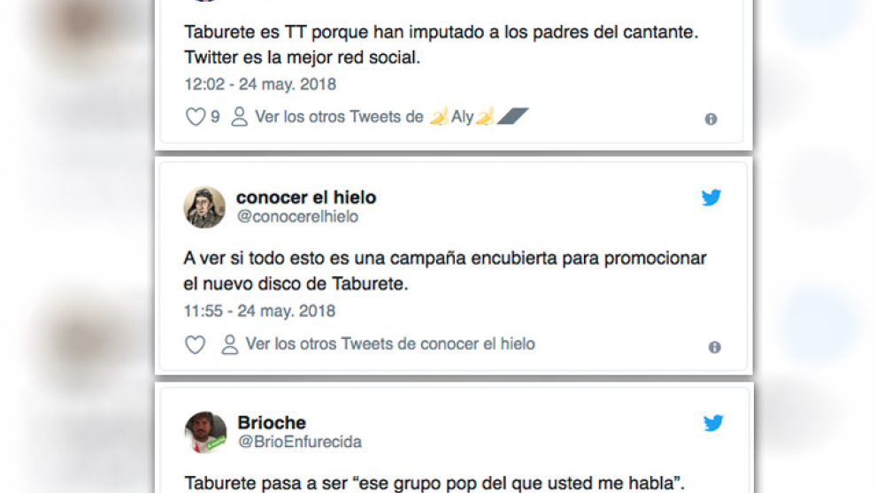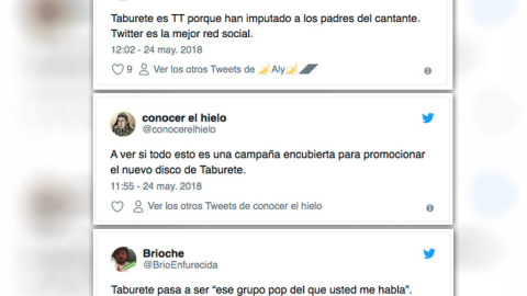 Taburete es el grupo de música liderado por Willy Bárcenas, hijo de Luis Bárcenas y Rosalía Iglesias. Tras conocerse la decisión de la Audiencia Nacional las redes se han llenado de chistes sobre el grupo. Además Eldiario.es ha publicado una noticia que explica que otro tesorero del PP “blanqueó dinero de Suiza camuflándolo como pagos por los estudios de Willy Bárcenas”. “El tribunal de Gürtel considera probado que Luis Sanchís ayudó a Bárcenas a repatriar 19.120 euros en concepto de estudios para el líder de Taburete”, detalla el periódico.