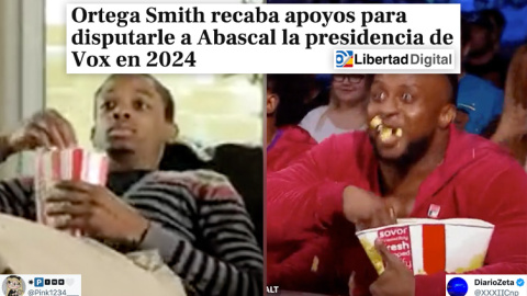 El titular sobre la batalla entre Ortega Smith y Abascal por liderar Vox, analizado en tuits: "Voy preparando palomitas"