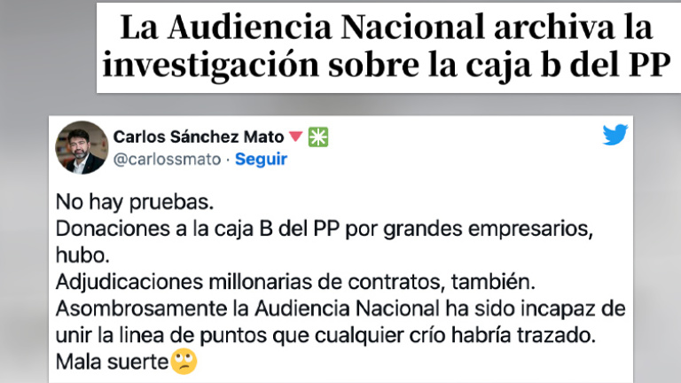 La Audiencia Nacional ha archivado este lunes la caja b del PP, en concreto la investigación de la pieza sobre las supuestas donaciones de empresarios al PP a cambio de la adjudicación de obra pública. Al parecer "no encuentra en la adjudicación de los expedientes de contratación incumplimientos de la normativa aplicable" e "imposibilita establecer una relación entre los pagos o donaciones y los contratos adjudicados". Vaya. Totalmente imposible. Qué mala suerte. Quién podía esperar un final así...