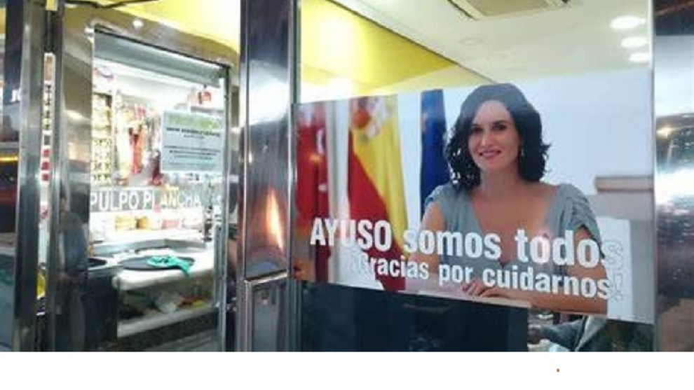 Desde hace unos días en muchos bares y restaurantes de Madrid se puede ver un gran cartel a la entrada de dichos establecimientos con una gran fotografía de Isabel Díaz Ayuso acompañada con el siguiente texto: "Ayuso somos todos, gracias por cuidarnos". Aunque la campaña en favor de la presidenta madrileña no va firmada, nadie duda de que los hosteleros de Madrid están detrás, pese a que la Asociación de Hostelería de Madrid tampoco se ha posicionado oficialmente.
