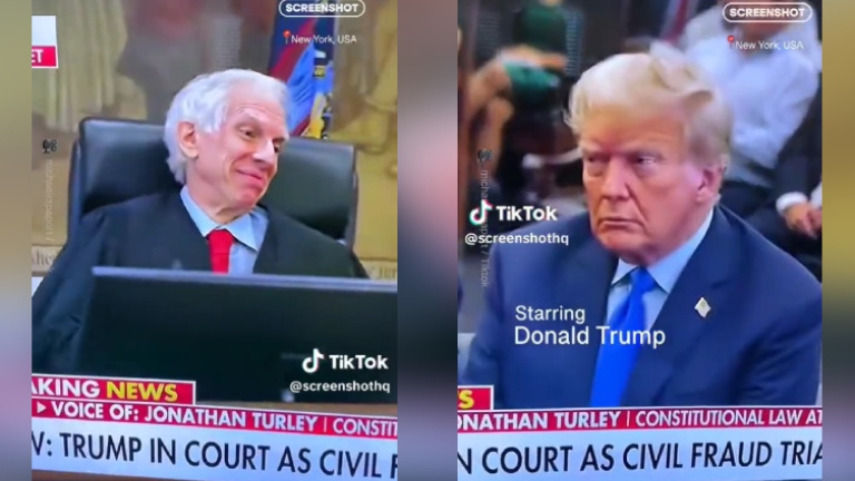 La escena ha tenido lugar en el juicio en el que está imputado el exmandatario Donald Trump por un delito de fraude fiscal. En las imágenes contrasta la expresión seria y de preocupación del acusado con la sonrisa y campechanía del magistrado que lleva el caso.