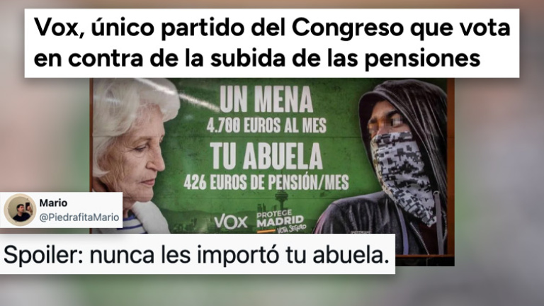 Mientras tanto, no pierden su esencia y este jueves se han quedado solos como único partido que ha votado en contra de la subida de las pensiones. Ya estás tardando en explicárselo a tus abuelos.